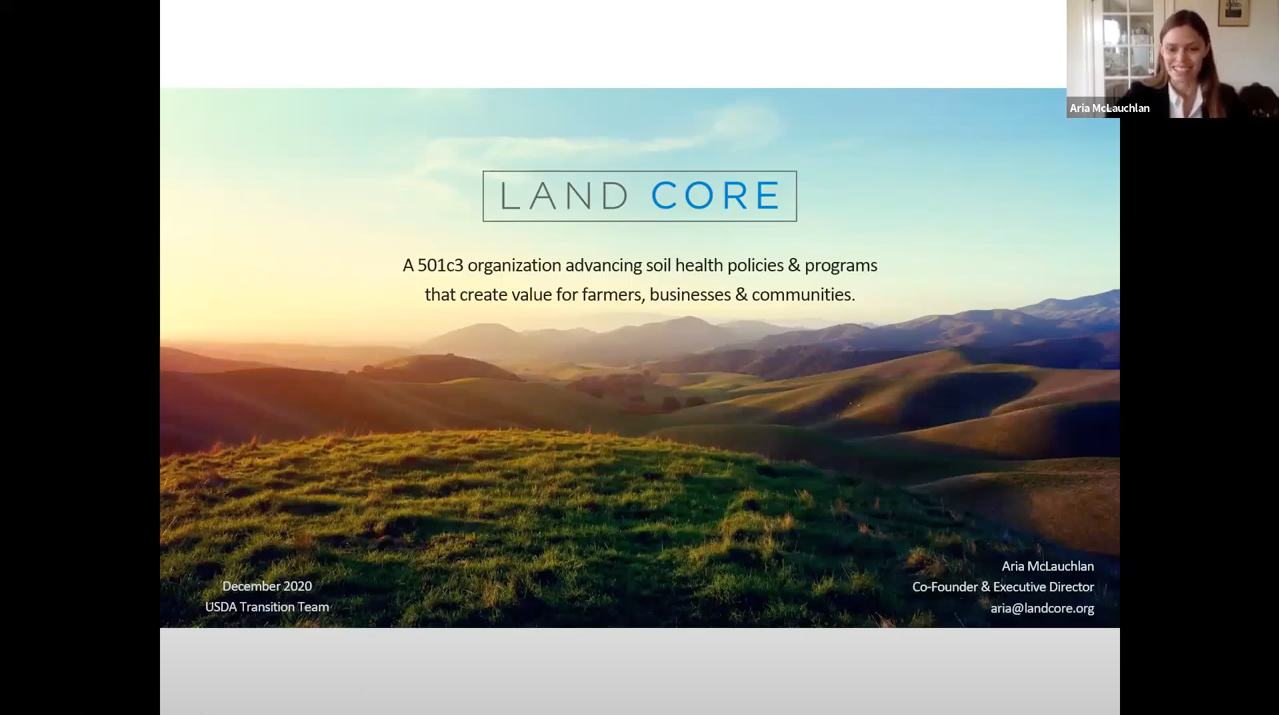 On December 16, Land Core’s Executive Director, Aria McLauchlan, presented soil health policy recommendations to the Biden-Harris Transition: Agency Review Team for the United States Department of Agriculture (USDA), alongside diverse colleagues convened by the American Sustainable Business Council.