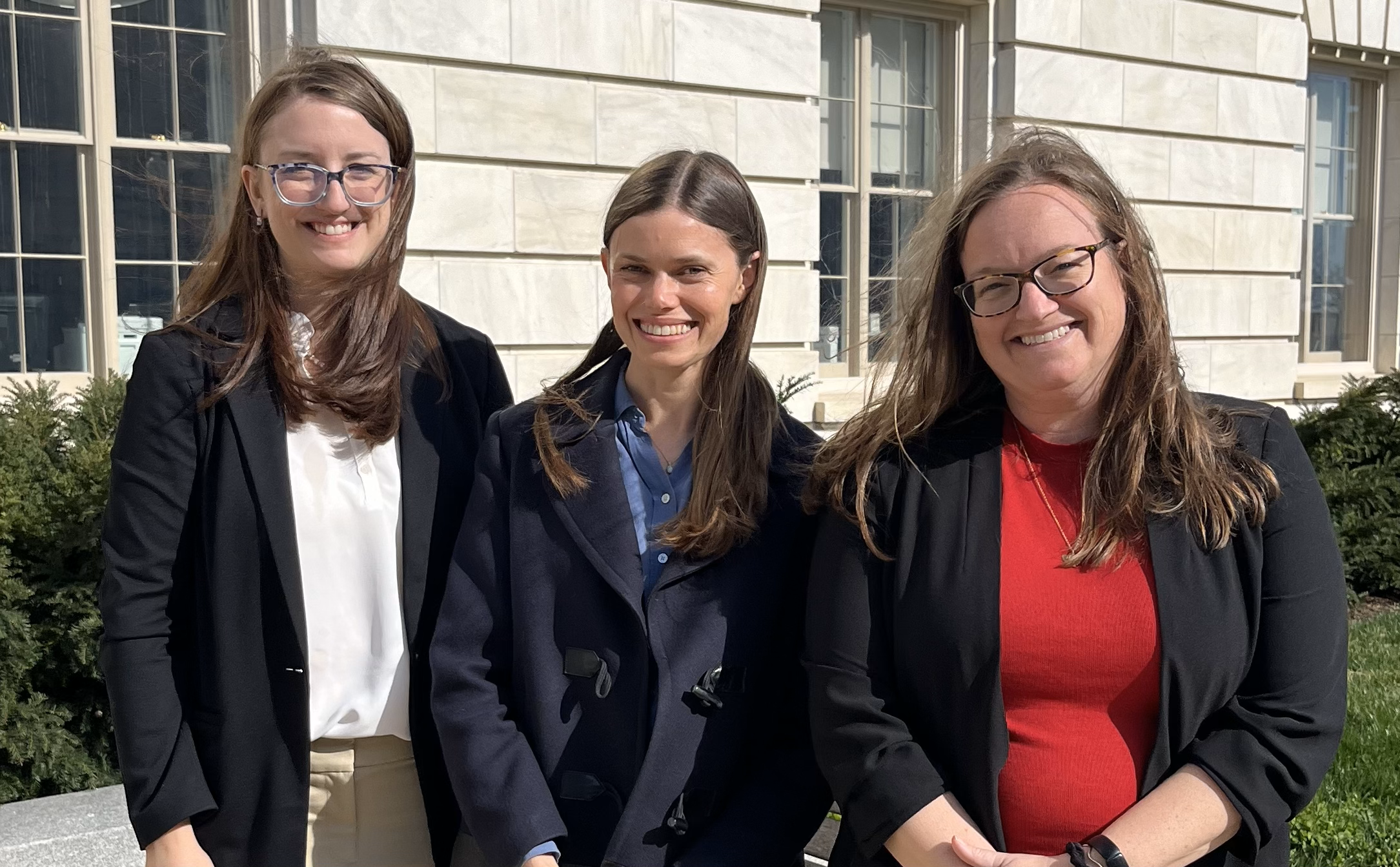 Pictured: Rachel Owen, Aria McLauchlan, and Clare Lindahl outside the Cannon House Building in Washington D.C.