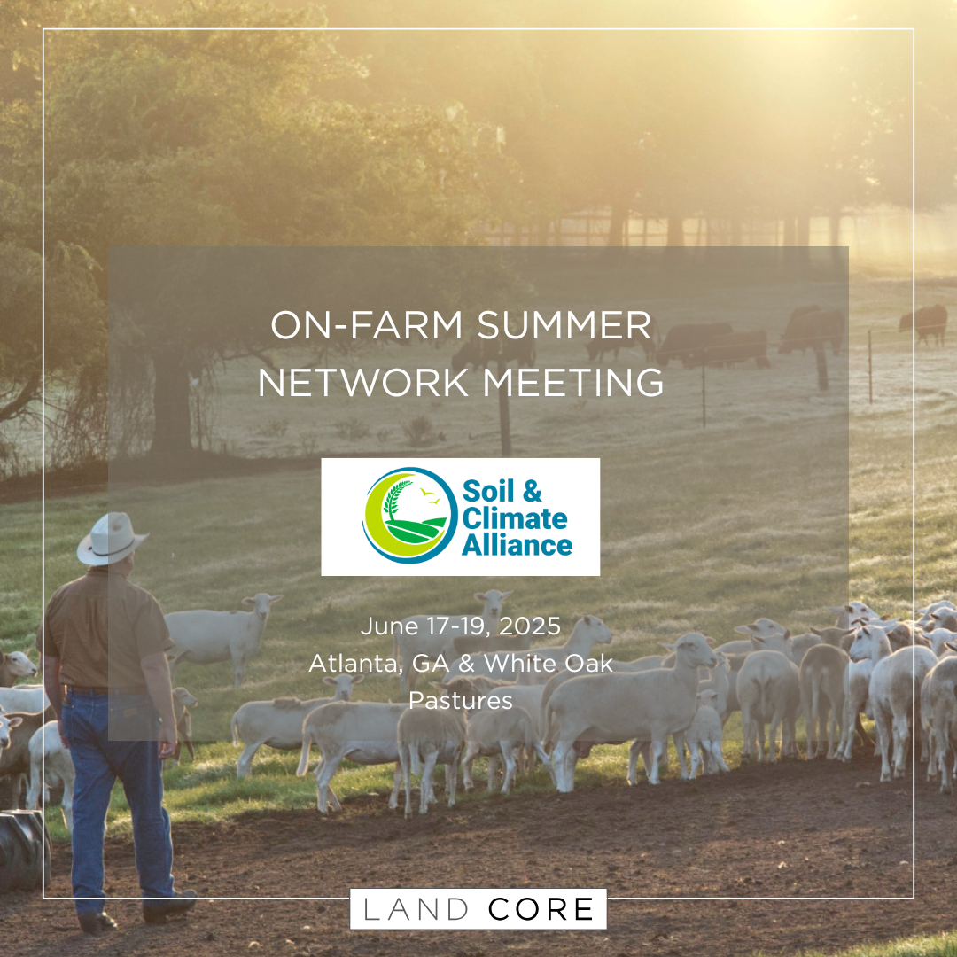 Land Core’s co-founders will be joining the Soil & Climate Alliance for their annual, in-person, summer meet up, including an exclusive field day at the famed White Oak Pastures, followed by a two-day network meeting in Atlanta. While invite only, interested parties should reach out to Jessica Hulse Dillon, the network’s Senior Director, for more info.